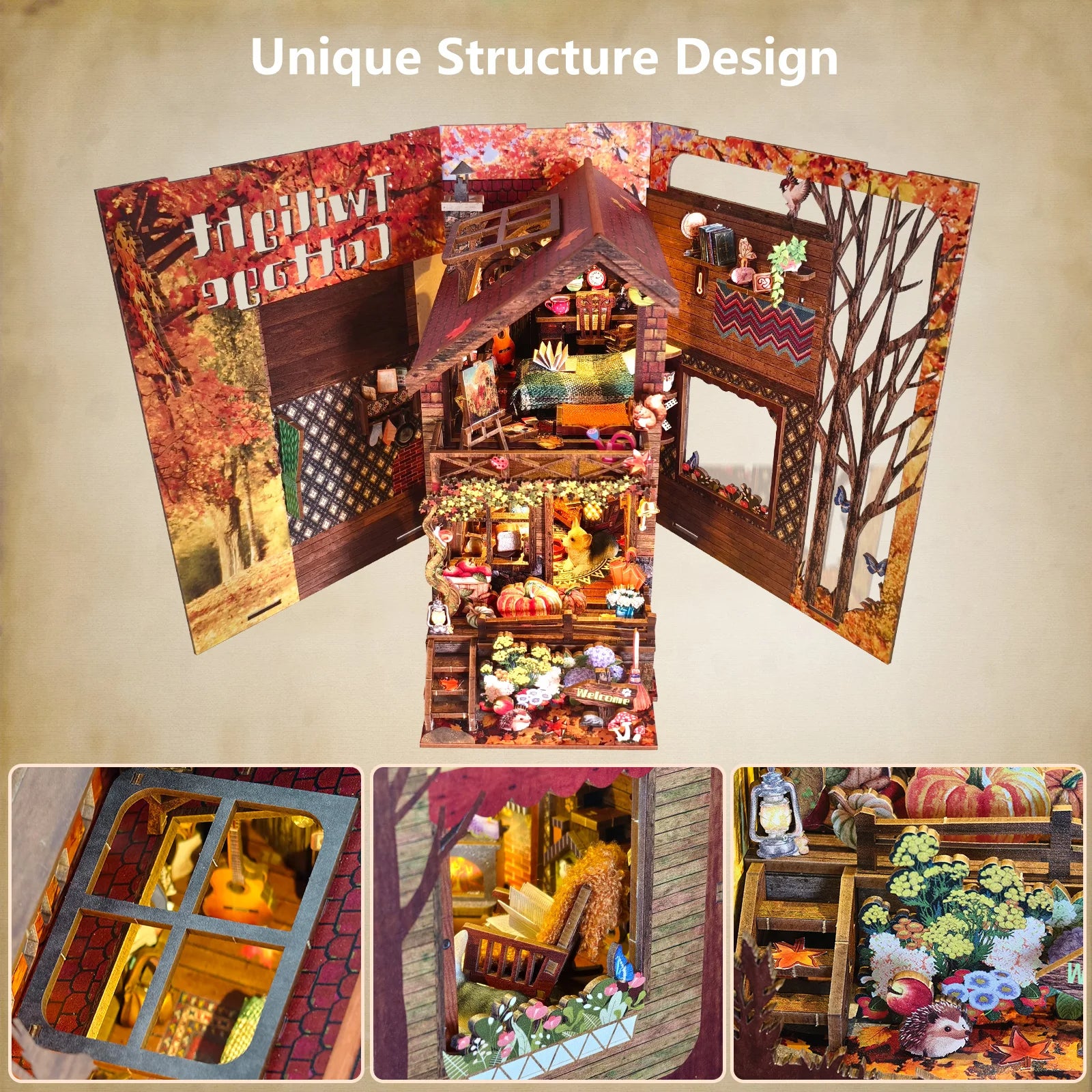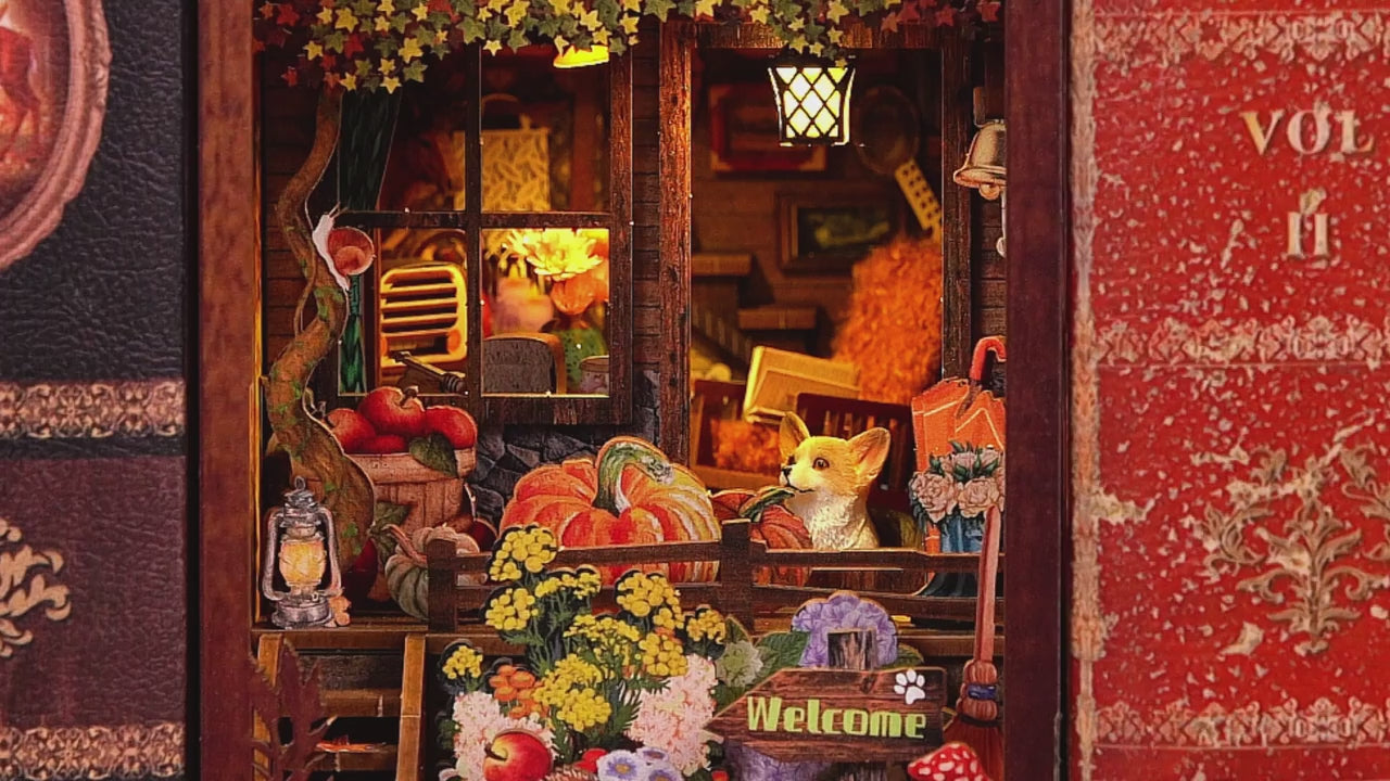 Welcome to Twilight Cottage, where cozy charm meets autumn’s warmth. This little retreat is filled with heartwarming details—like a sweet puppy curled up peacefully by the fireplace, and soft lighting that creates a tranquil atmosphere. Adorned with books, art, and vibrant fall decor, this cottage offers a perfect escape into comfort and creativity. Whether you're curled up with a book or simply enjoying the cozy vibe, Twilight Cottage is designed for those who cherish the simple joys of home and nature.