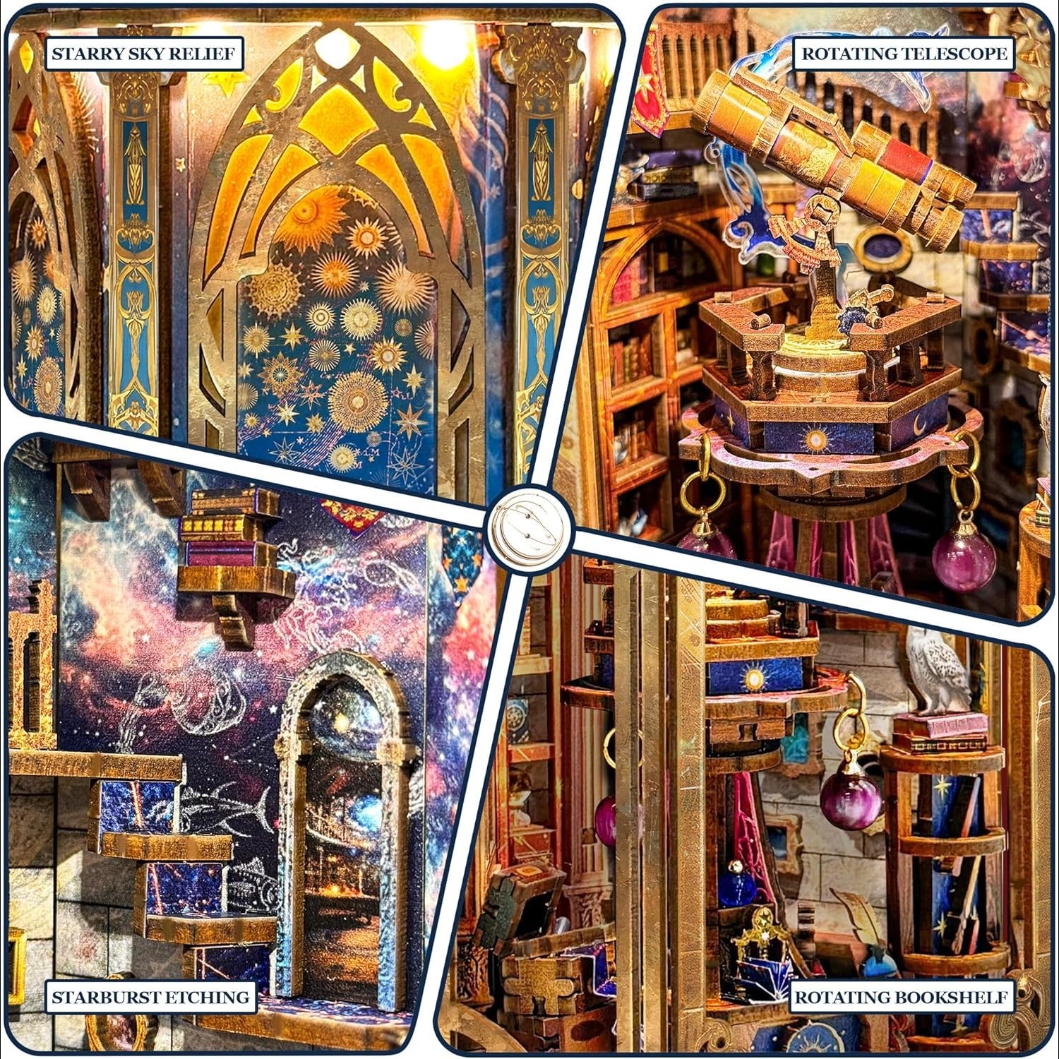 This is a breathtaking portrayal of a pastoral countryside dwelling. In the golden autumn, unexpected hedgehogs wander by the door, baskets overflow with apples and pumpkins on the steps, snails diligently climb upwards, a cozy fireplace glows, and the table in the hall holds ever-blooming flowers. A well-behaved puppy rests nearby, while upstairs, the owner’s bed and the pet’s little bed nestle close together, accompanied by an easel, a guitar… The moment you lay eyes on this book nook, a vivid image of the charming rural scenery instantly comes to mind.