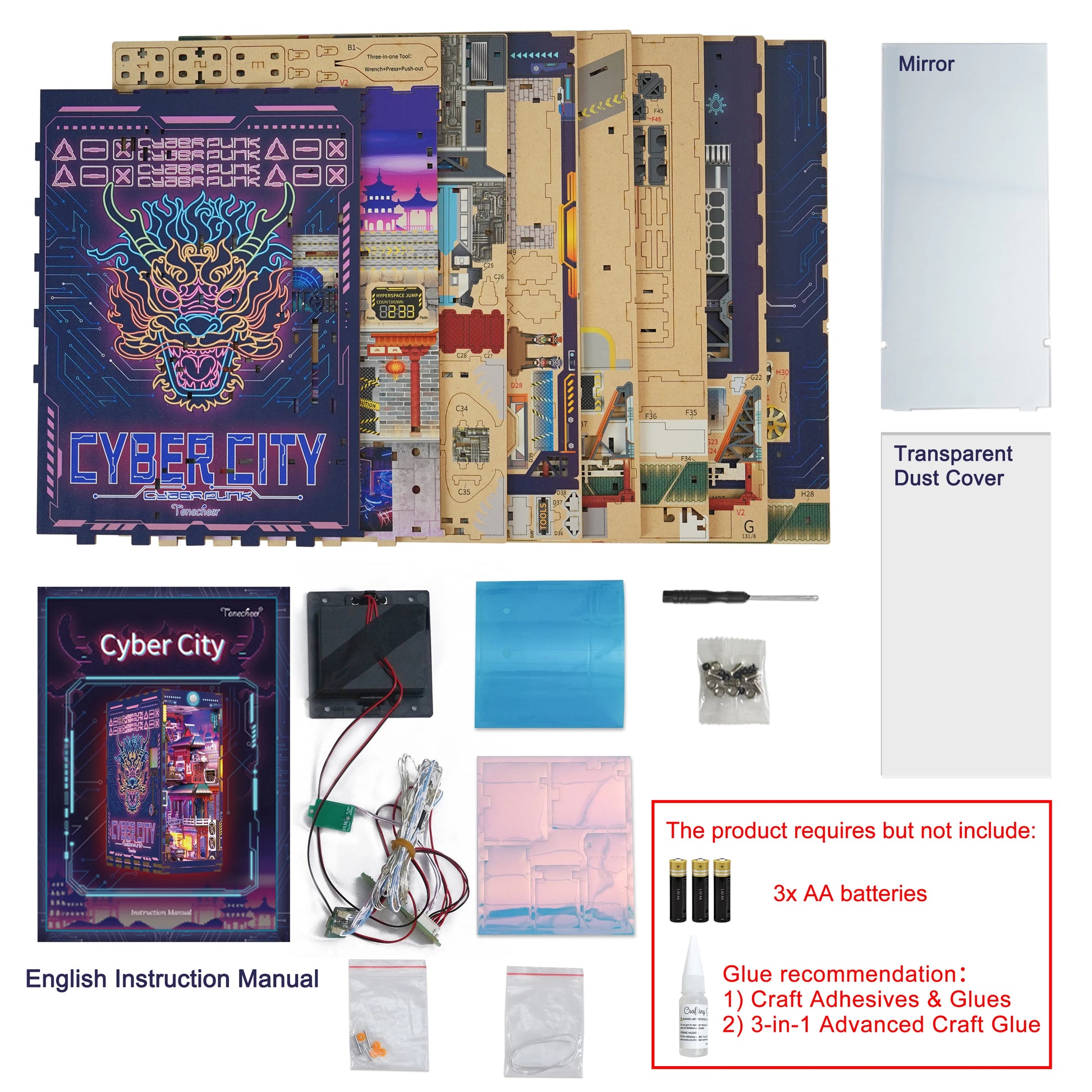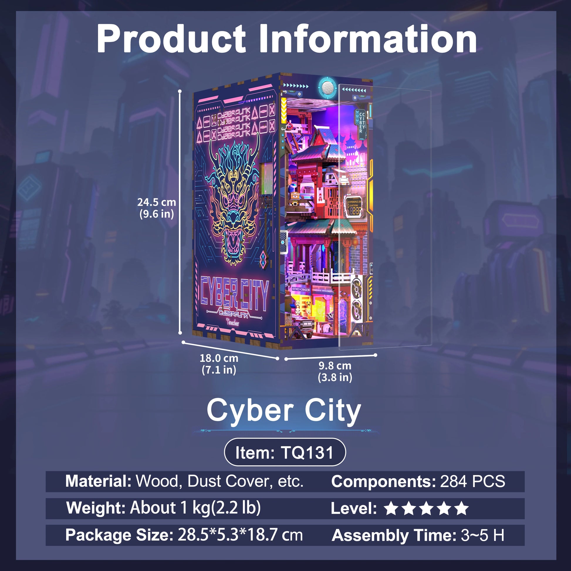 TONECHEER TQ-131 3D Wooden Puzzle DIY Book Nook Kit (Cyber City)