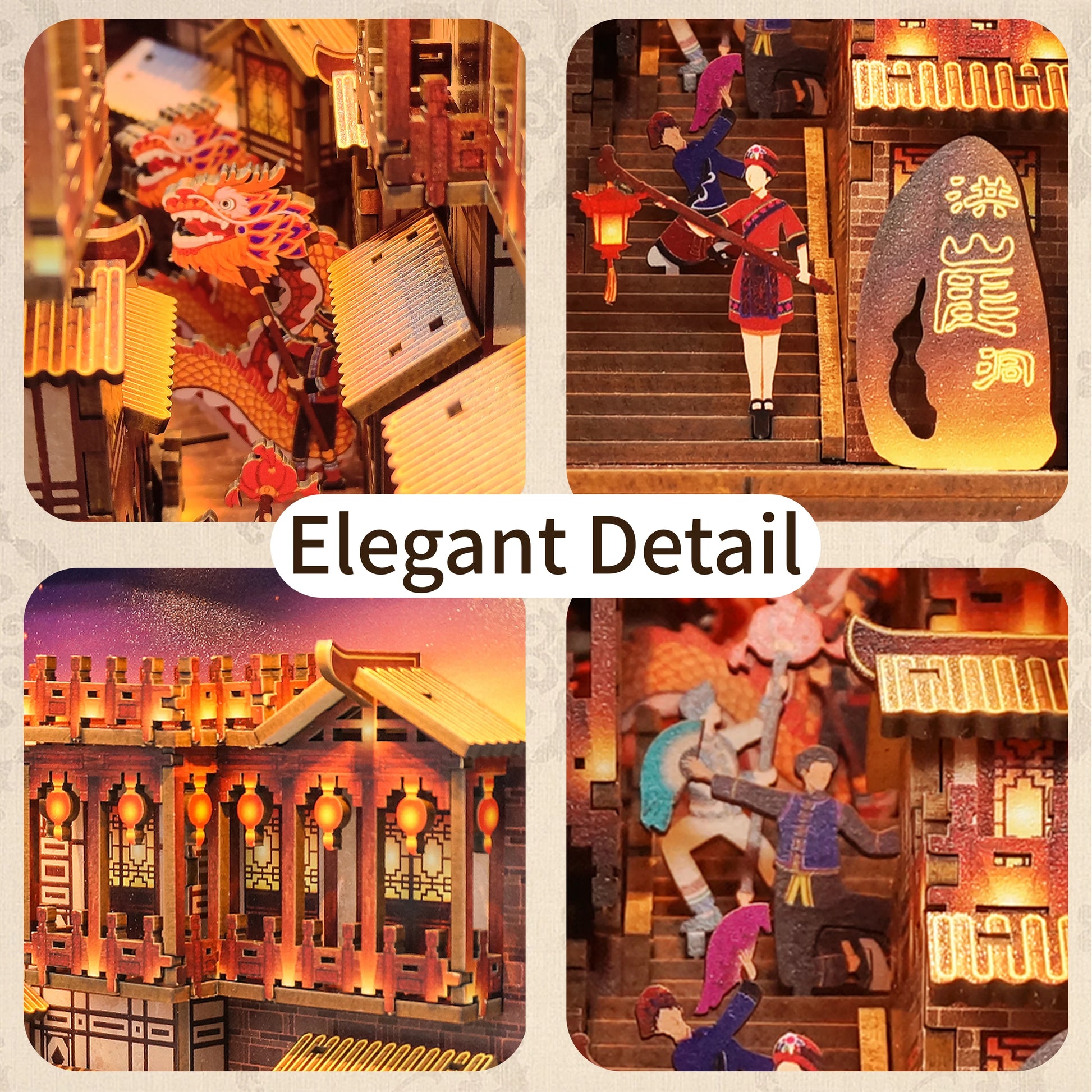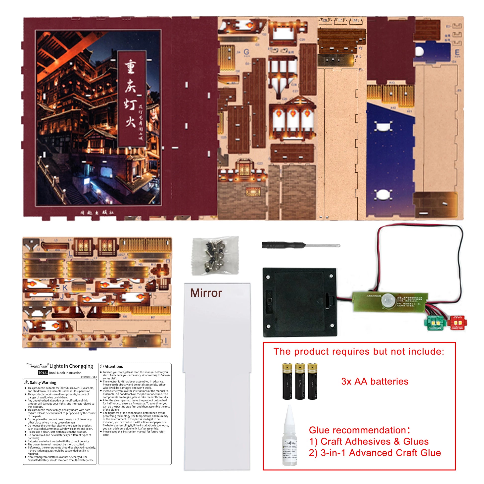 - Lights in Chongqing: Tonecheer DIY Book Nook Kit showcases the folk culture and nighttime beauty of Chongqing, China. As night falls, red lanterns are lit up, dotting the night sky like stars. Theater troupes come here to sing and dance and perform the traditional Chinese lantern and dragon dances.
