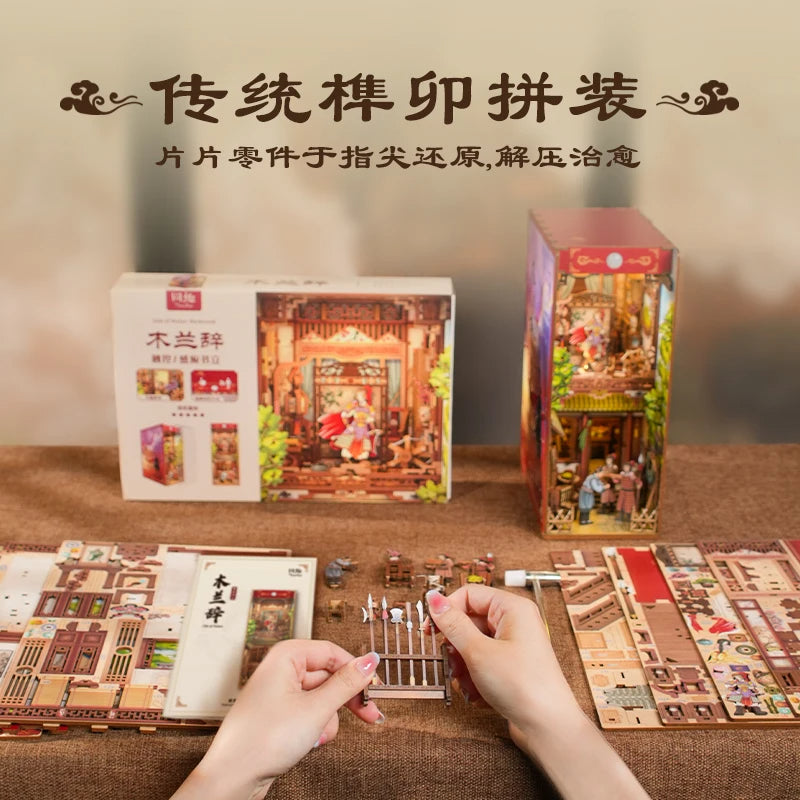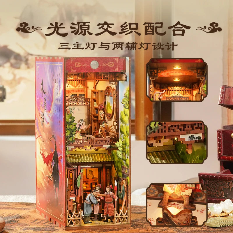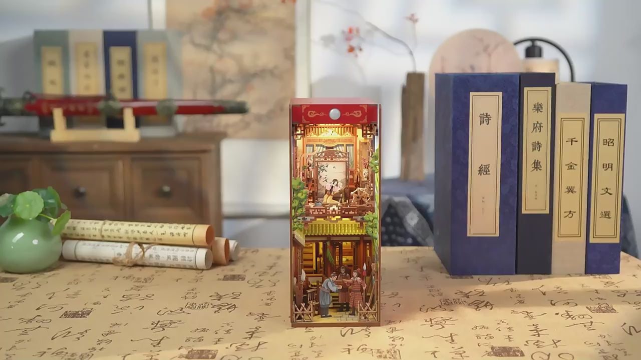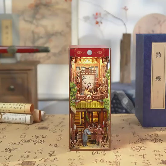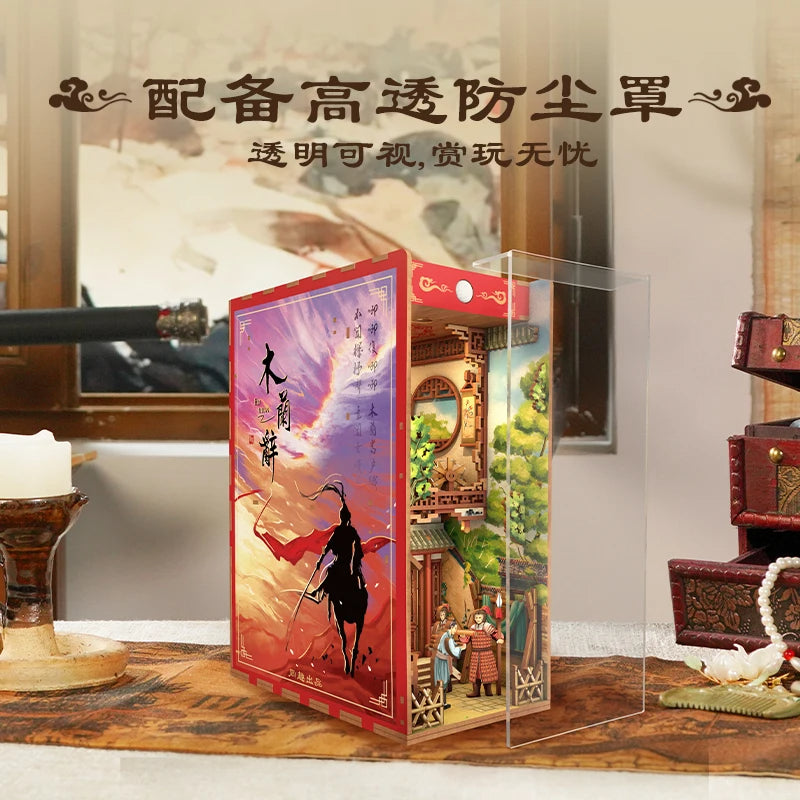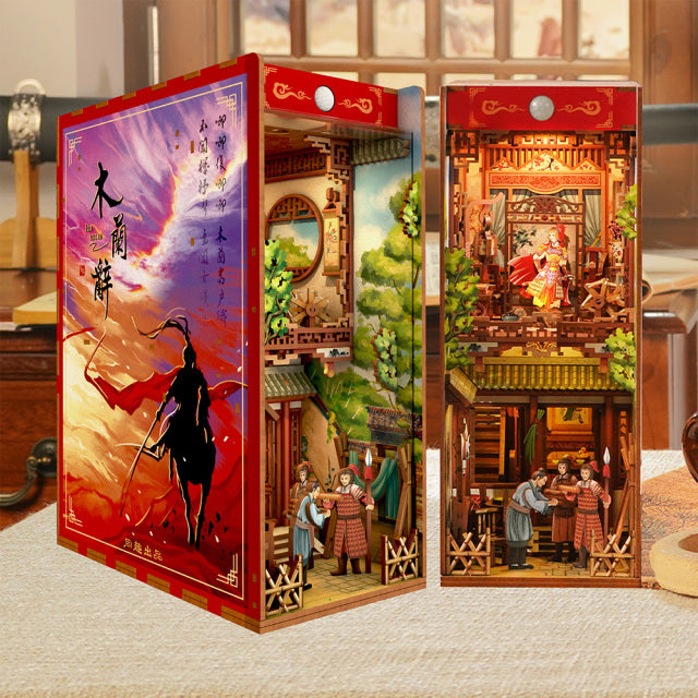 Dare to cross the threshold of an imperial palace and enter the legend of a heroine whose valor resonates in every plum blossom petal. This bookbook recreates a setting filled with poetry and courage: paper lanterns illuminate corridors lined with carved columns, banners flutter in the breeze, and in the background, the delicate silhouette of a warrior can be glimpsed, rising against the darkness.