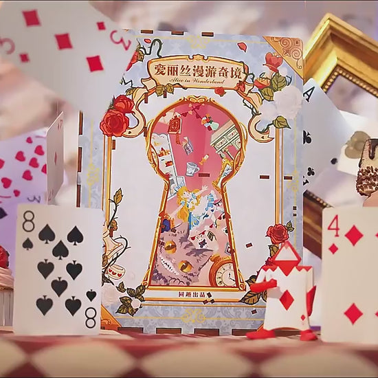 - Alice in Wonderland: Tonecheer DIY Book Nook Kit shows blonde Alice accidentally falls down a rabbit hole through a lush forest and embarks on an adventure full of fantasy, mystery and the unknown. Here, Mr. Rabbit is in a hurry with his pocket watch, the Cheshire Cat peeks out of a picture frame on the wall, and cabinets and people are floating in the air.
