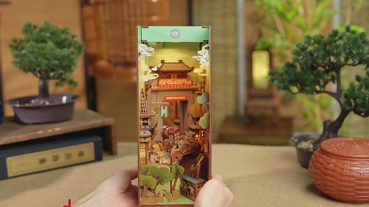 The bustling city of Bianliang, the rows of wine shops and theaters, and the city life at that time all converged on this busy Hongqiao. Turning on the light of the book nook is just like the lights of the night market in the Northern Song Dynasty. Standing in front of the bookshelf and gazing at Hongqiao, with a wave of the hand, you are in Bianliang.